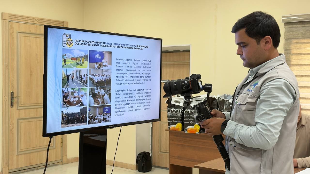 Namangan viloyati 6-son viloyat madaniyat markazida "O'zarxiv" agentligi, Namangan viloyati arxiv ishi hududiy boshqarmasining "O'zarxiv" agentligi tizimida yoshlar bilan olib borilayotgan ishlar" mavzusida matbuot anjumani boʻlib oʻtmoqda.