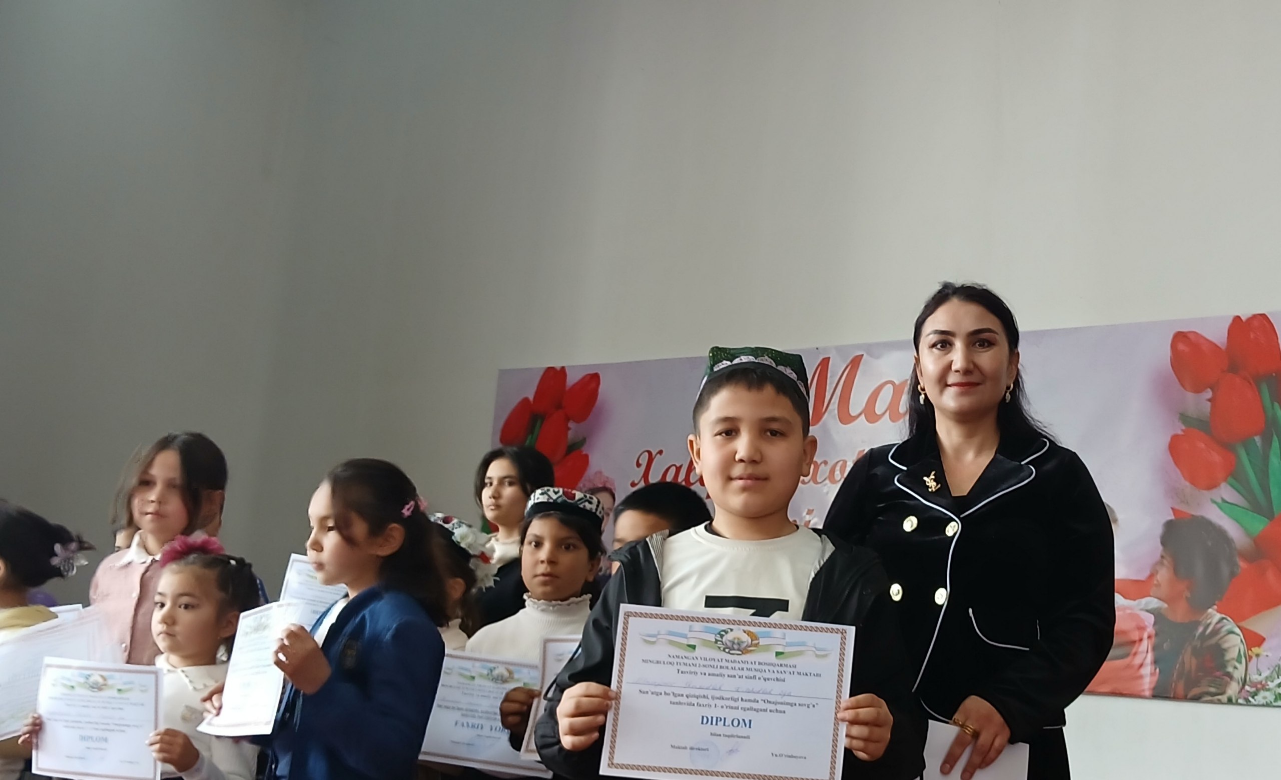 Mingbuloq tumani 2-sonli bolalar musiqa va san'at maktabida tasviriy va amaliy san‘at sinfi o'quchilari o'rtasida 8-mart "Xalqaro xotin- qizlar" kuni bayramiga bag'ishlangan "Onamga sovg'a" deb nomlangan tanlov bo'lib o'tdi.